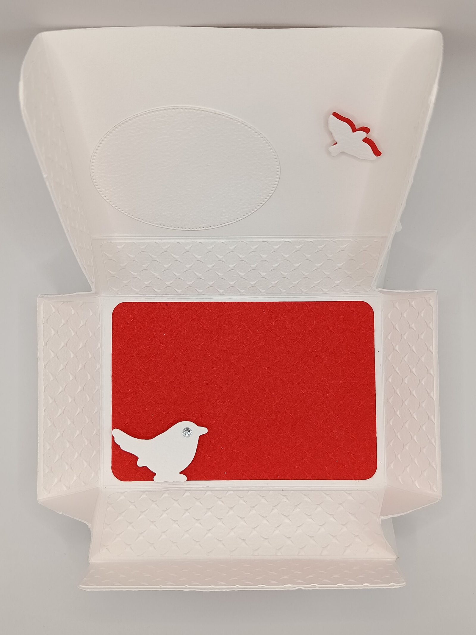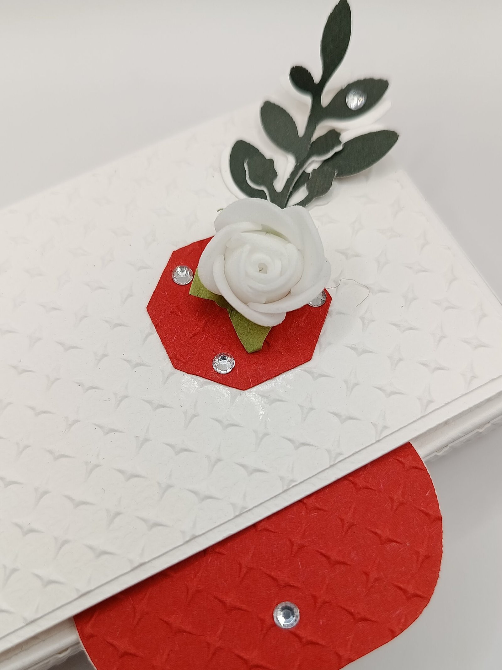 Boîte artisanale faite main, rouge et blanche. Élégante, décorée avec soin, idéale pour offrir une attention, un mot ou quelques dragées.